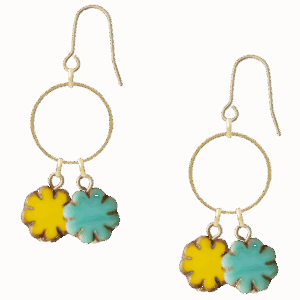 チェコビーズフラワー(イエロー):明るくプレイフルなイエローが、顔周りを華やかに彩ります。